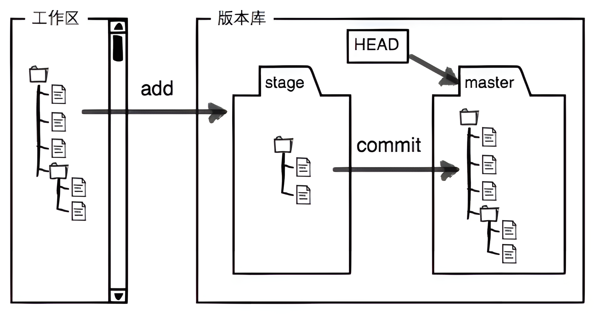 git add把文件添加进去,实际上就是把文件修改添加到暂存区git commit提交更改,实际上就是把暂存区的所有内容提交到当前分支
